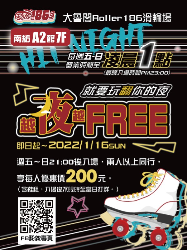 【Roller186南紡館限定】186越夜越Free,就要玩翻你的夜!