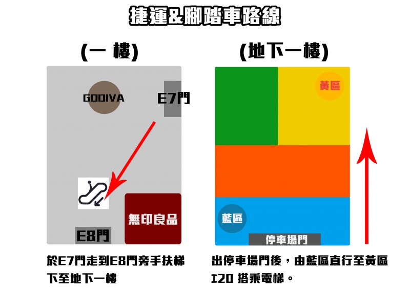 ※因SKM Park美食街改裝,請改走B1停車場黃區 I 20柱搭乘電梯至3樓草衙館。