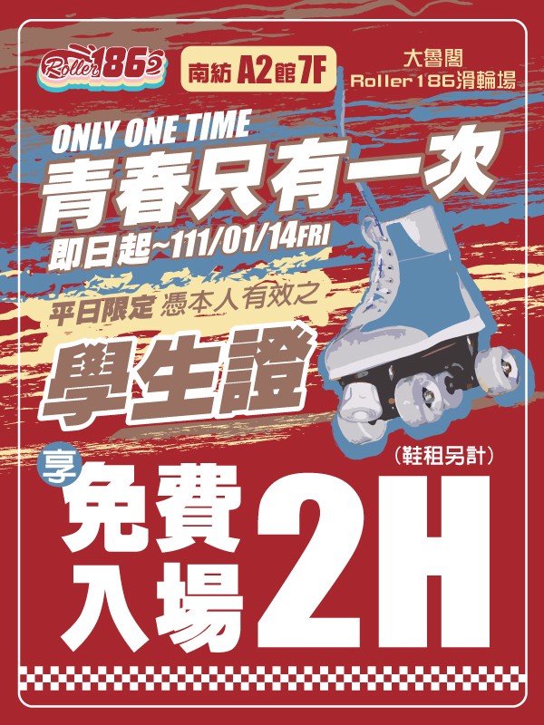 【Roller186南紡館限定】平日學生2H入場門票免費!