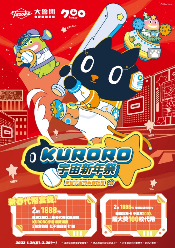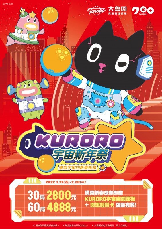 首頁 最新消息 【大魯閣x宇宙喵Kuroro】新春開運代幣最低59折起,再送你Kuroro宇宙喵開運襪! 2022.01.24 優惠活動 【大魯閣x宇宙喵Kuroro】新春開運代幣最低59折起,再送你Kuroro宇宙喵開運襪! 【Kuroro宇宙新年祭】讓宇宙喵Kuroro 療癒你的日常生活 給你來自宇宙的新春祝福~ 讓Kuroro 跟著地球人的腳步一起出發去探險吧! 【新春優惠方案】【新春好禮多重送】點圖前往▼【2022過年大魯閣走春行程懶人包】點圖前往▼ 分享此篇文章 更多消息 2022.01.26 優惠活動 【連假大魯閣出遊行程】連假出遊室內景點,哪裡出遊不塞車?大魯閣連假場館16種出遊路線推薦! 2022.01.21 優惠活動 大魯閣運動用品春節限時限量活動 2022.01.21 綜合 【Roller186滑輪場】來館參加活動!開春抽價值3,080元的富士拍立得、免費獲得拍貼機序號!