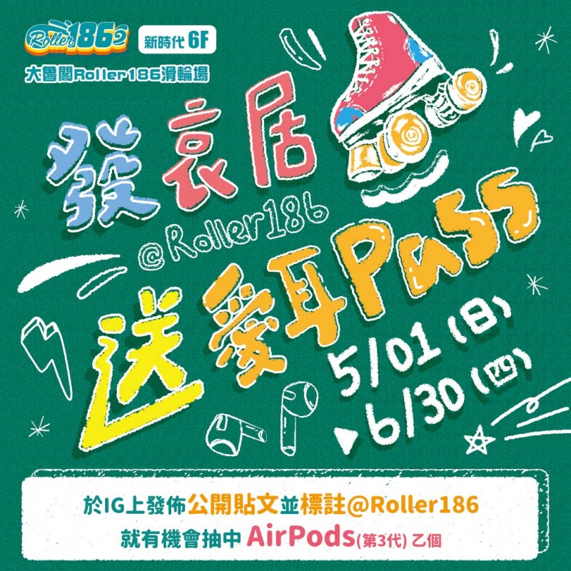 ⊙ 於IG上發佈公開貼文並標註 @Roller186,就有機會抽中AirPods (第3代)喔!