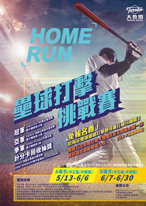 活動場館:大魯閣棒壘球打擊場中正館、中壢館。