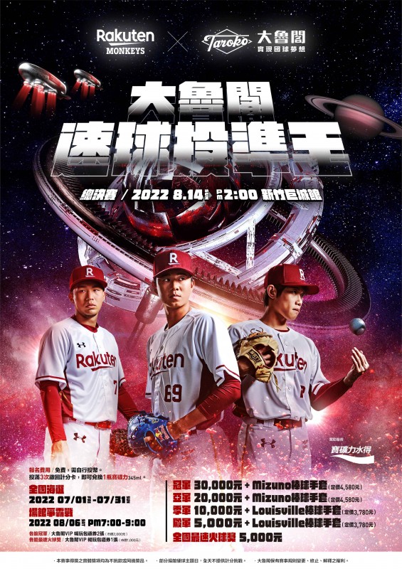 全國冠軍:30,000元獎金+ Mizuno棒球手套(定價4,580元,不挑款)。