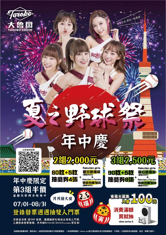 【棒壘球年中慶】Taroko x Rakuten最強聯名之夏之野球祭,代幣最低58折!