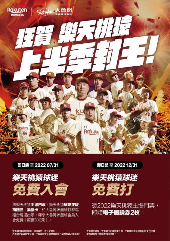 【狂賀!樂天桃猿上半季封王】樂天桃猿球迷免費入會、免費打