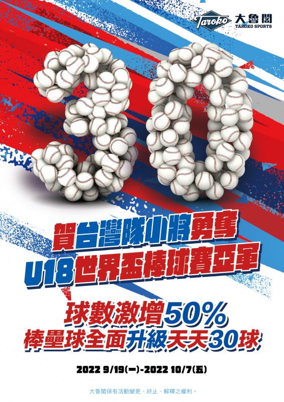 首頁 最新消息 【歡慶U18台灣隊勇奪銀牌】大魯閣棒壘球全面升級,天天30球! 2022.09.19 優惠活動 【歡慶U18台灣隊勇奪銀牌】大魯閣棒壘球全面升級,天天30球! 【歡慶U18台灣隊勇奪銀牌】大魯閣打擊場球數全面加碼 ! 即日起至2022/10/7(五)棒壘球道由20球增加到30球,不分平假日讓你打到手痠,用行動力挺國球,一起來燃燒你的棒球魂吧!大魯閣保有活動變更、終止及解釋之權利。 分享此篇文章 更多消息 2022.09.19 賽事活動 【飛鏢】2022 大魯閣盃秋季飛鏢賽 2022.09.16 優惠活動 填寫問卷抽「FUJIFILM instax mini 40拍立得」和「VIP尊享暢遊券」 2022.09.14 優惠活動 【棒壘球】HOMERUN!贈酒精噴霧筆