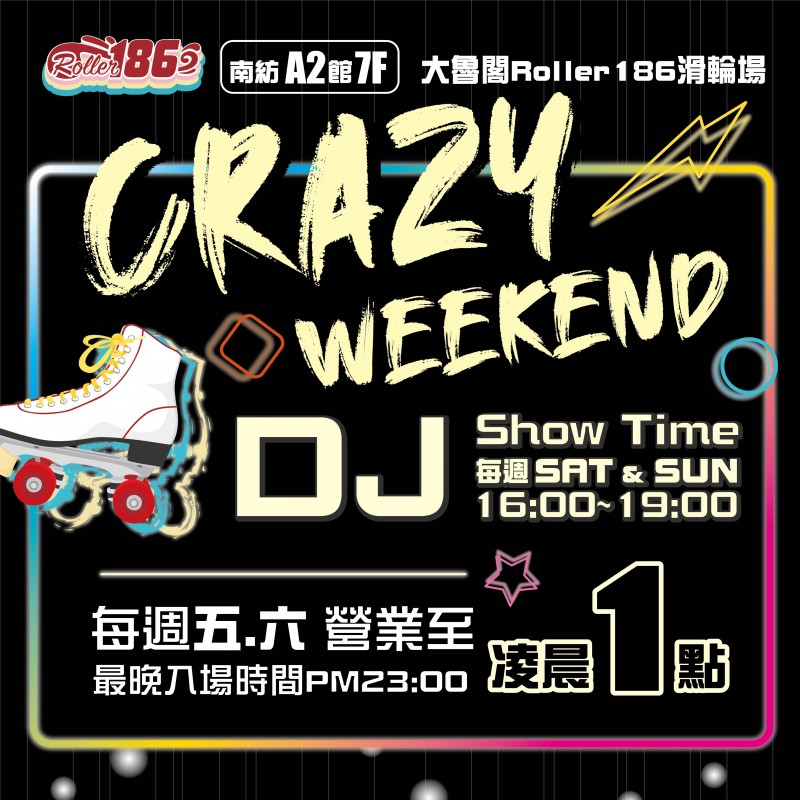 【Roller186南紡館】CRAZY WEEKEND!DJ 陪你嗨翻滑輪,嗨翻台南!