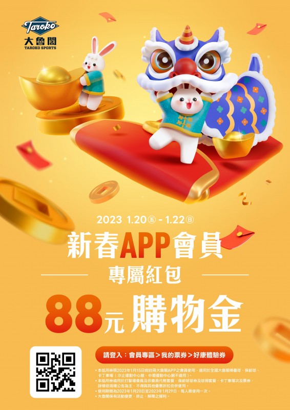2023/1/15 前註冊成為大魯閣 APP 之會員,贈送88元購物金。