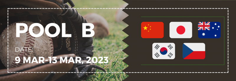 【B組】日本、韓國、中國、澳洲、捷克,In日本東京巨蛋 比賽時間 : 03/09(四)-03/13(一)