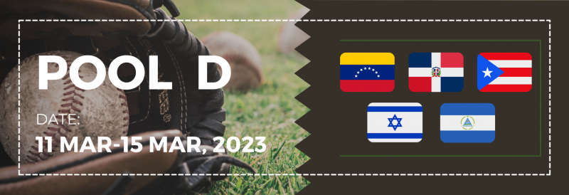 【D組】委內瑞拉、多明尼加、波多黎各、以色列、尼加拉瓜,In邁阿密貸得寶球場 比賽時間 : 03/11(六)-03/15(三)
