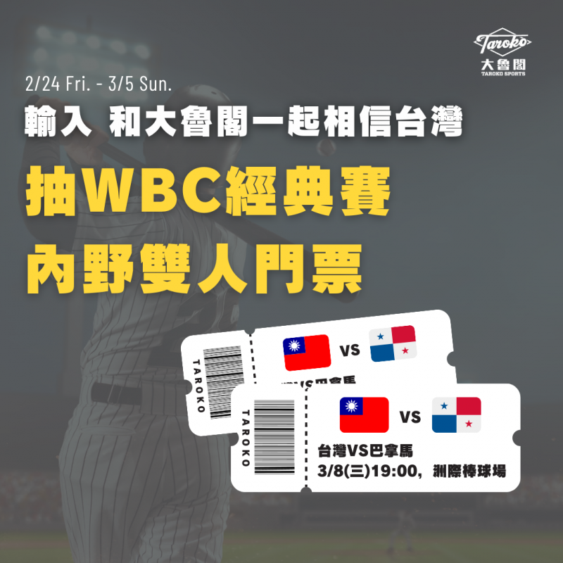 至大魯閣instagram官方帳號留言 #和大魯閣一起相信台灣,即可抽 WBC 經典賽內野雙人門票。