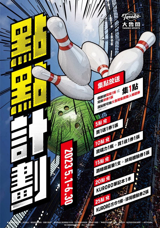 【保齡球】點點計畫,滿點即抽大魯閣事業體雙人暢遊券(價值6,020元)