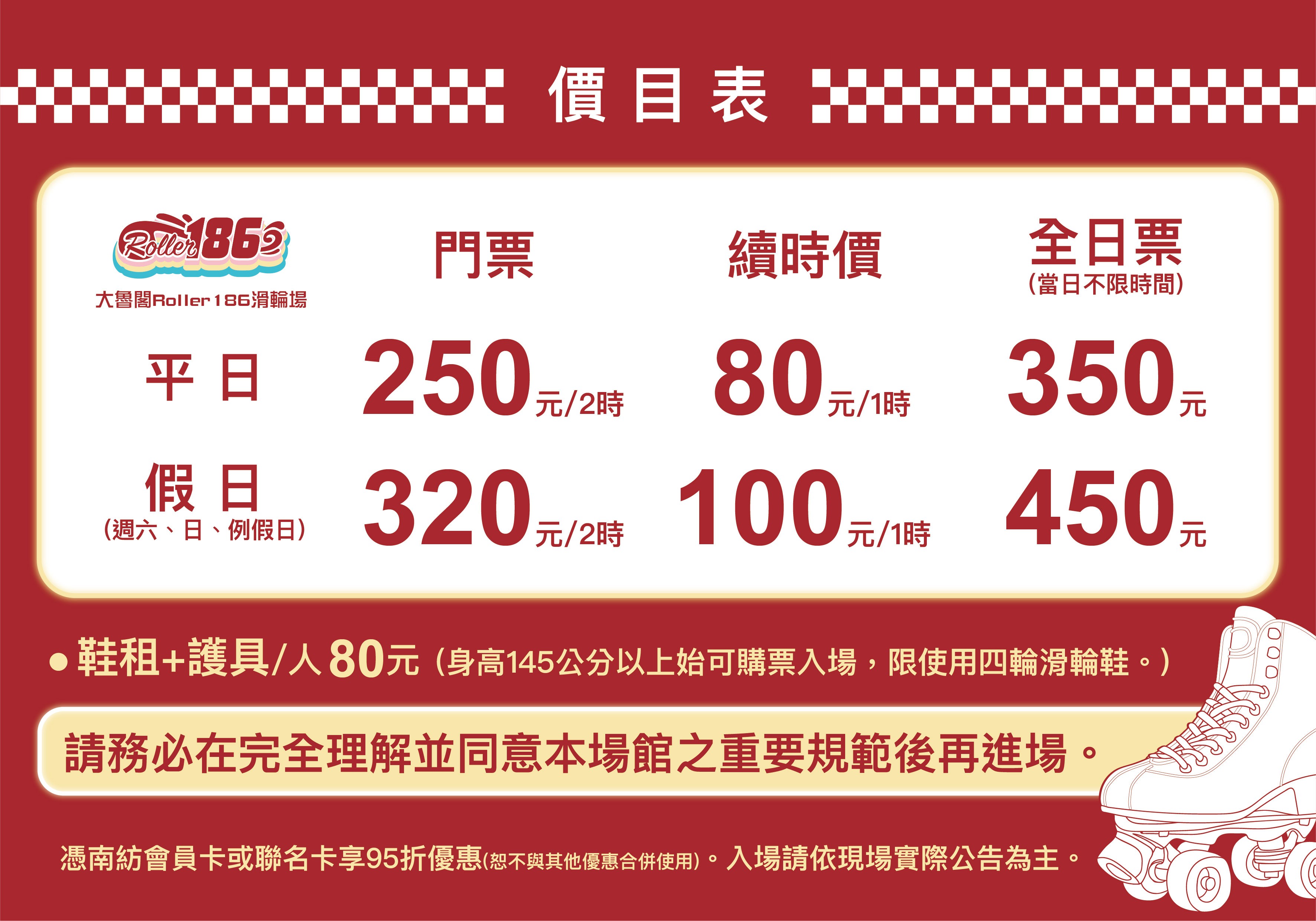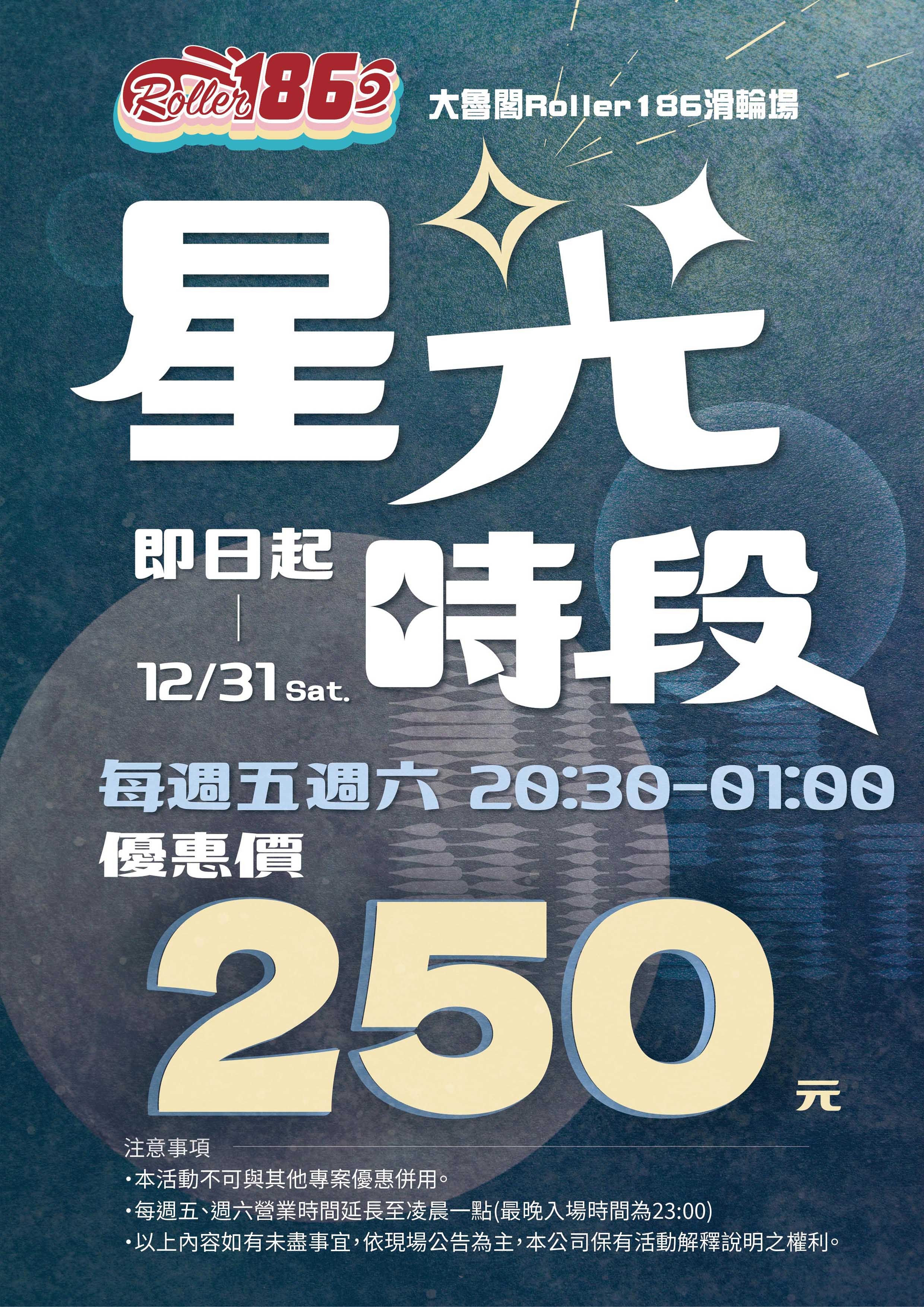 【Roller186滑輪場 南紡館】嗨翻你的夜!星光時段只要250!