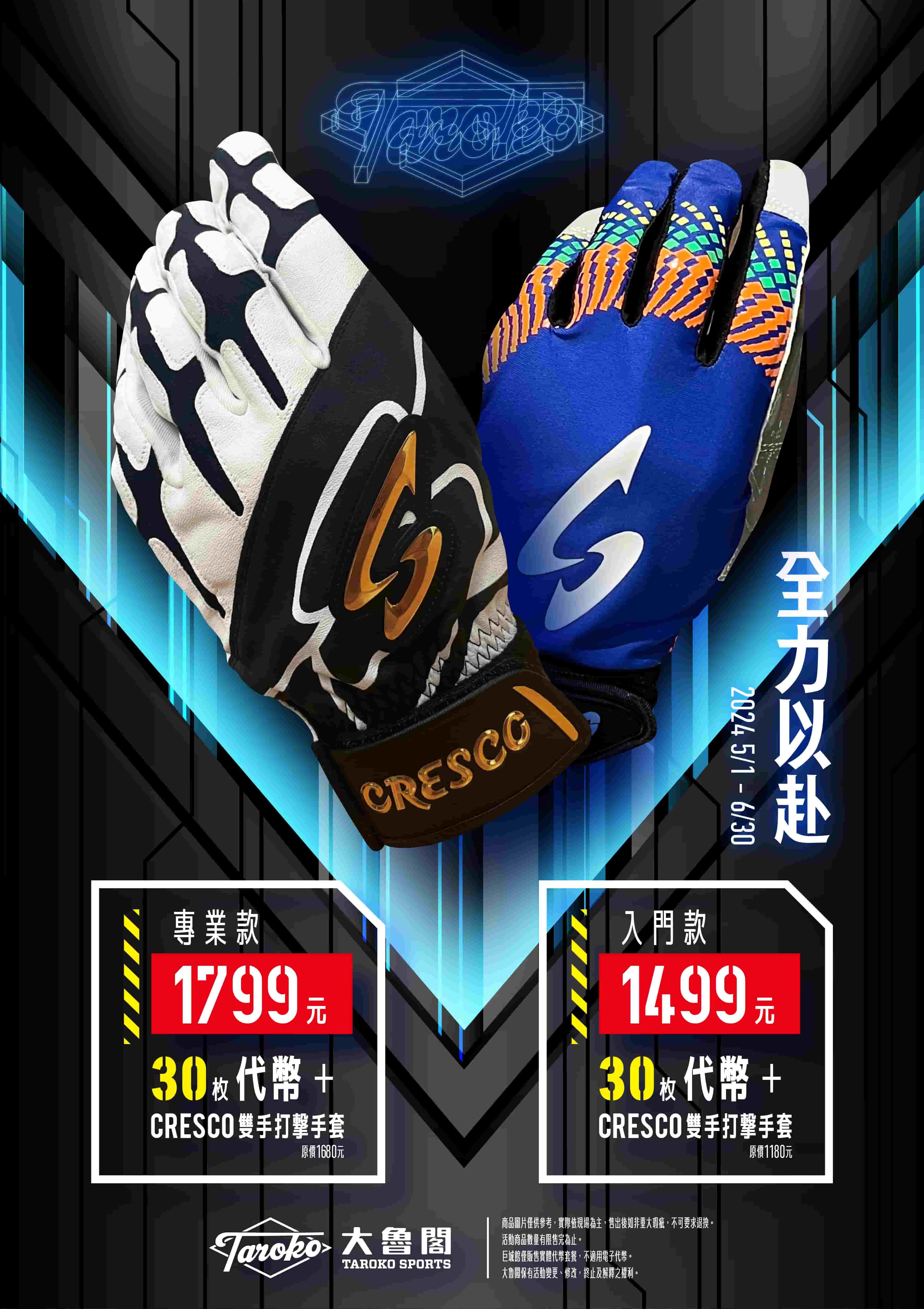 【入門款1499】:30枚 + CRESCO雙手打擊手套(原價1180元)
