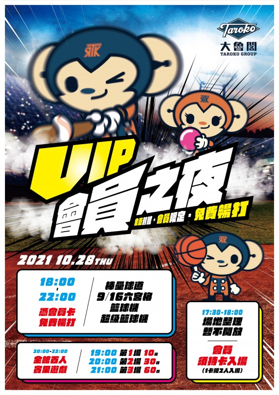 首頁 最新消息 【大魯閣會員專屬】大魯閣18週年VIP之夜 整晚免費暢打暢玩 2021.10.28 優惠活動 【大魯閣會員專屬】大魯閣18週年VIP之夜 整晚免費暢打暢玩 棒壘球(汐止 新莊 中正 中壢 嘉義 仁德 中華)湳雅巨城新時代(保齡球)草衙 分享此篇文章 更多消息 2021.11.05 綜合 【服務已終止】來大魯閣指定場館球道體驗打擊錄影,紀錄你的揮棒英姿,即時回傳到手機! 2021.10.28 優惠活動 【大魯閣】2021 let's Rock n' Roll 週年會員慶典 2021.10.27 綜合 【得獎公告】2021大魯閣問券抽獎活動,得獎名單公告!