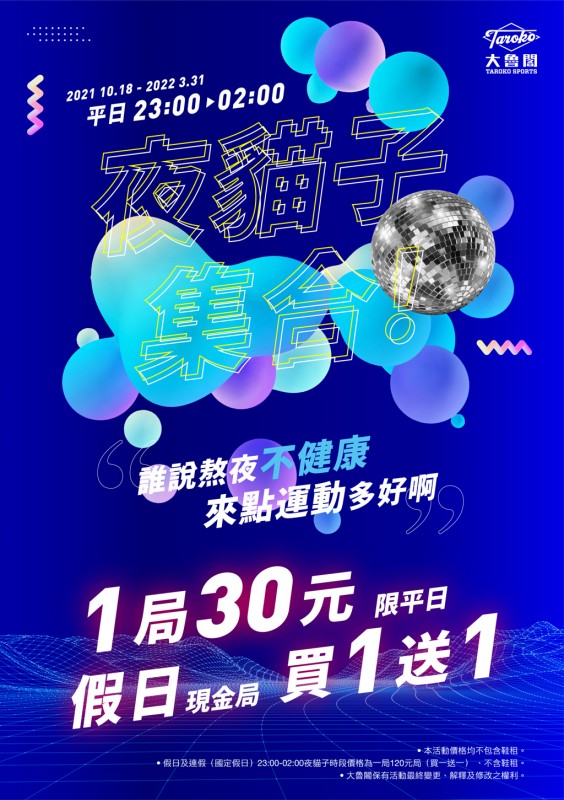 首頁 最新消息 【保齡球】花蓮夜貓子集合~深夜時段1局30元。 2021.10.22 優惠活動 【保齡球】花蓮夜貓子集合~深夜時段1局30元。 分享此篇文章 更多消息 2021.10.26 優惠活動 【Roller186】超級玩家日,接龍大解放 2021.10.19 優惠活動 【富邦悍將新莊館】FIGHTON 強悍出擊! 2021.10.12 賽事活動 【保齡球】大魯閣盃冬季保齡球公開賽事規章&最新排名