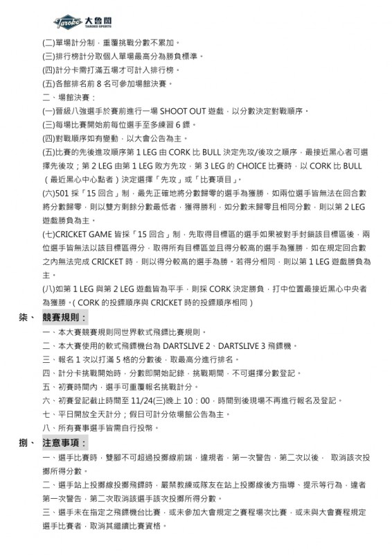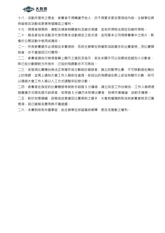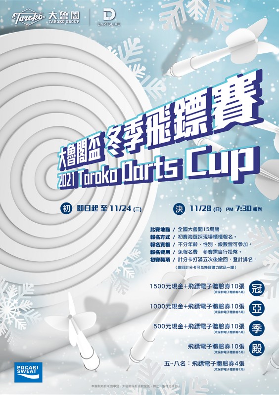 首頁 最新消息 【2021大魯閣盃冬季飛鏢賽】賽事詳情! 2021.11.08 賽事活動 【2021大魯閣盃冬季飛鏢賽】賽事詳情! 分享此篇文章 更多消息 2021.11.19 優惠活動 【大魯閣集團】2022 未來之星儲備店長全台招募會 2021.11.05 綜合 【服務已終止】來大魯閣指定場館球道體驗打擊錄影,紀錄你的揮棒英姿,即時回傳到手機! 2021.10.28 優惠活動 【大魯閣會員專屬】大魯閣18週年VIP之夜 整晚免費暢打暢玩
