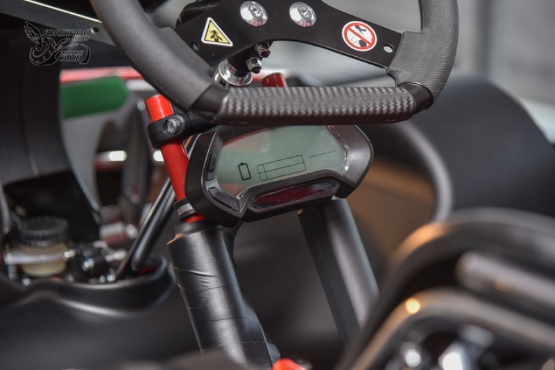 Birel ART N35 E-Kart 在方向盤下有著多功能的顯示儀表,可以顯示時速、電量、車輛模式等多樣資訊。這也是舊款 N35 油車所沒有的配備。